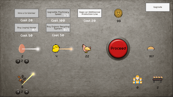 Ad Nauseam is a management clicker game where you raise chicken to cook chicken pies. A lot of chicken pies. You will need help of co-workers and invest in additionnal production line and specialized technology to save money and maximize your Pie per Second ratio.